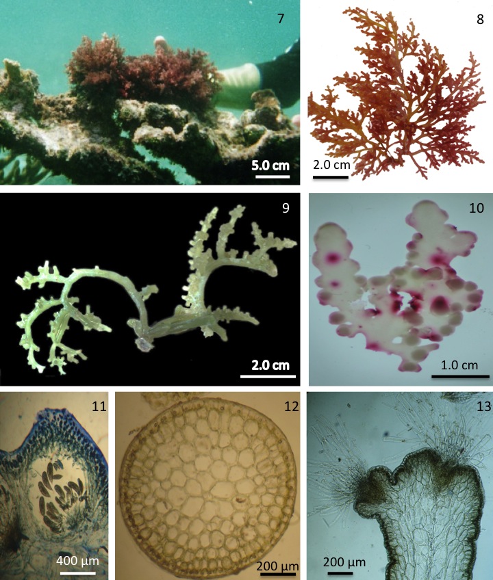 Se presenta la revisión de la familia Rhodomelaceae en México. Los primeros registros datan de 1847,época en que J. Agardh citó a Polysiphonia perpusilla y P. dictyurus. A la fecha la familia está representada en