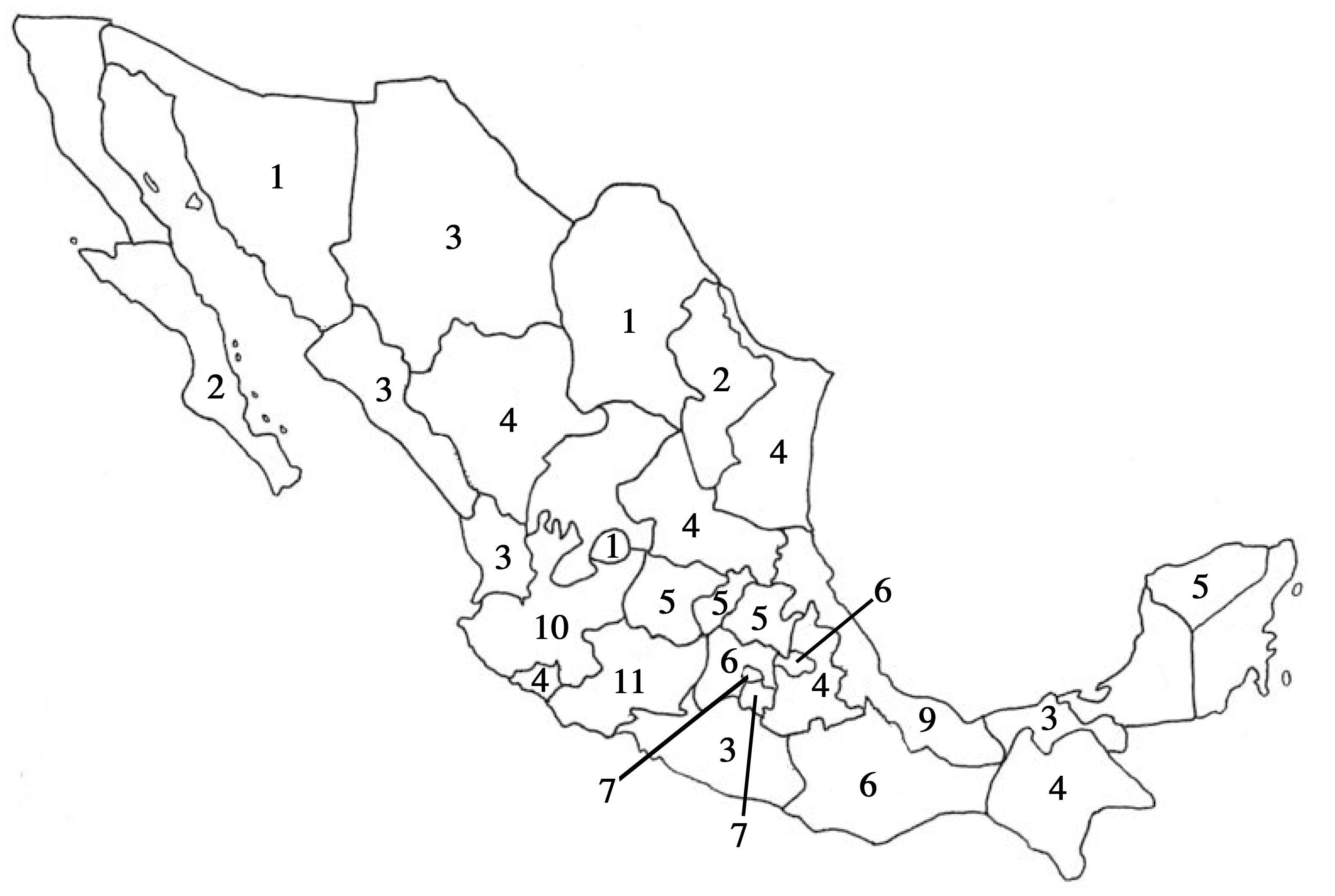 y Michoacán son los mejor representados con 10 y 11 registros respectivamente, por el contrario Baja California,