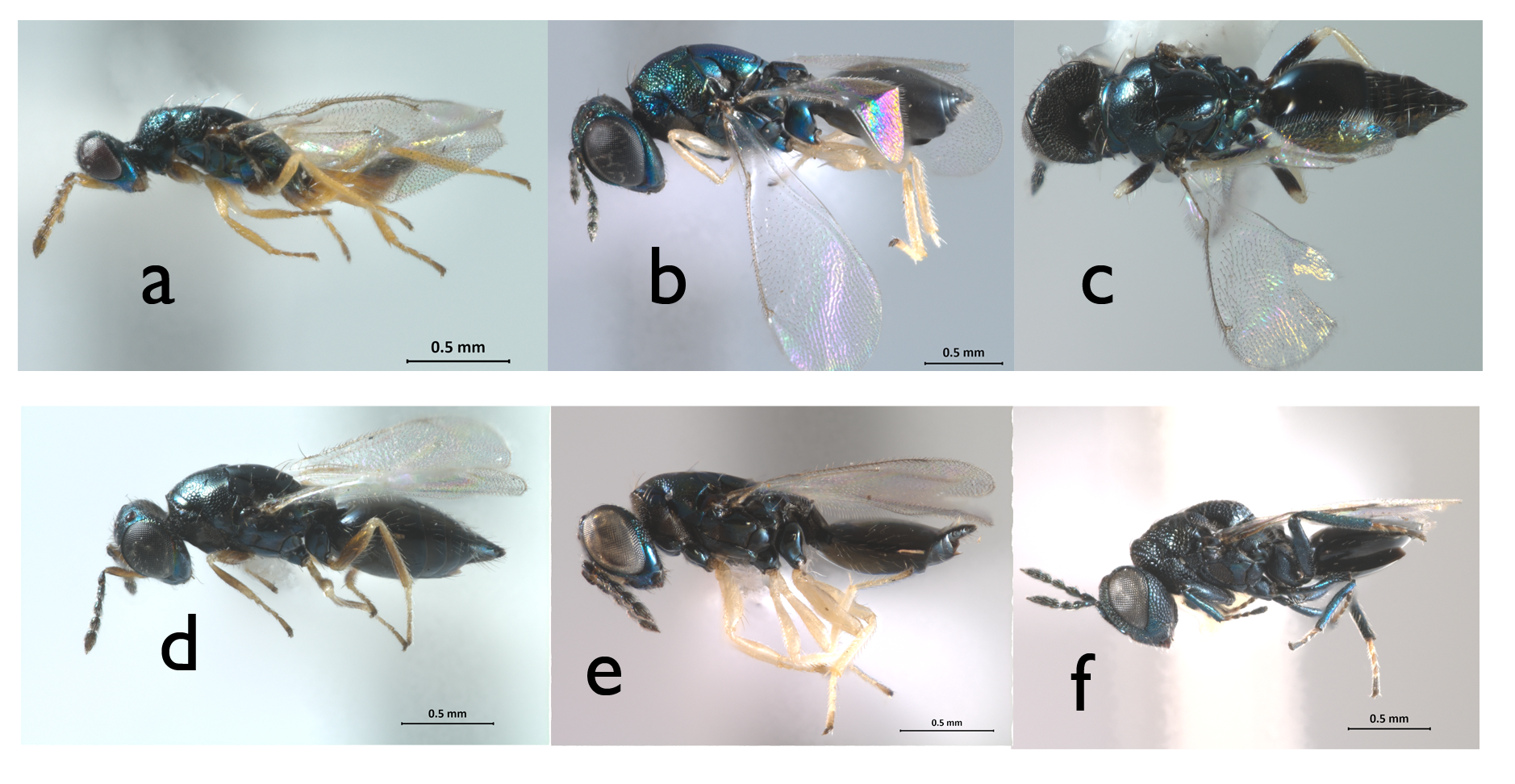 Chalcidoidea are a highly diverse group of Hymenoptera and the most common parasitoids, being associated to more than 15 hexapod orders. The identification of species in this superfamily is considerably difficult due to their small size, lack of comprehensive taxonomic studies for many groups and convergence of morphological features. In